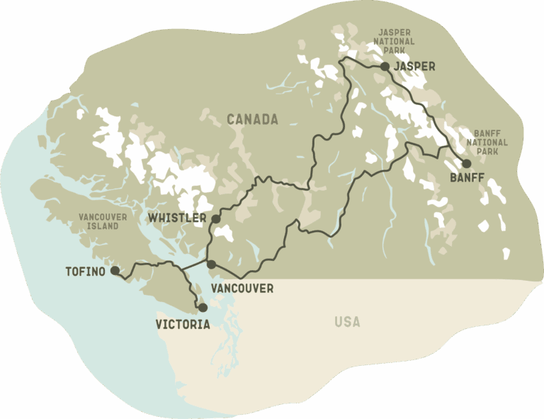 Voici l’aperçu de votre circuit de 12 jours à travers l’Ouest canadien. Cet itinéraire vous guide vers les plus beaux endroits, tout en vous laissant libre de composer vos journées à votre rythme.